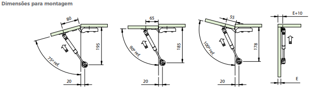Descrição: Pistão a gás Mini para portas basculantes com aberturas de 75° a 100°.